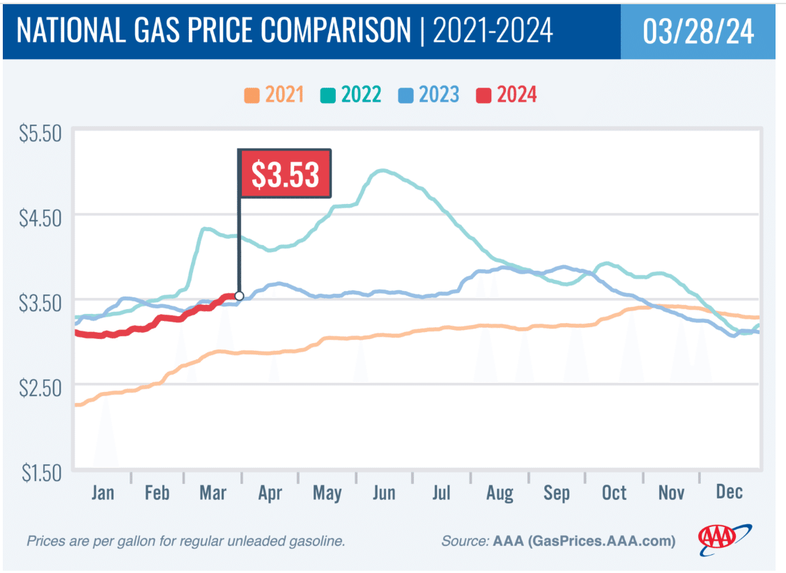 その原因として全米レギュラーガソリン価格がこのところヒタヒタと上昇している事を指摘できます。