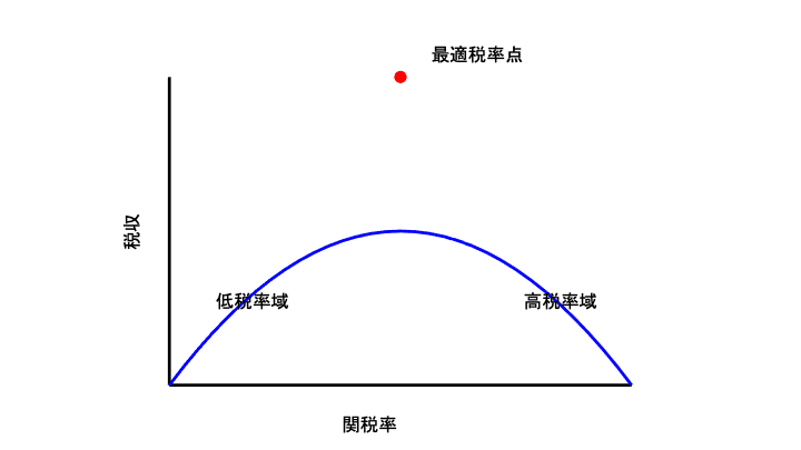 仮に高い関税が導入されたとしてもそれが直ぐに増収につながるとは限りません。これは「ラッファー曲線」で説明できます。