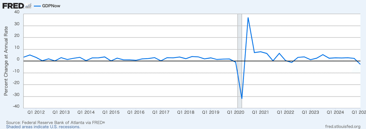 一方アトランタFRBは第1四半期のGDPナウの数字をこれまでの−1.5%から−2.8%に下方修正しました。