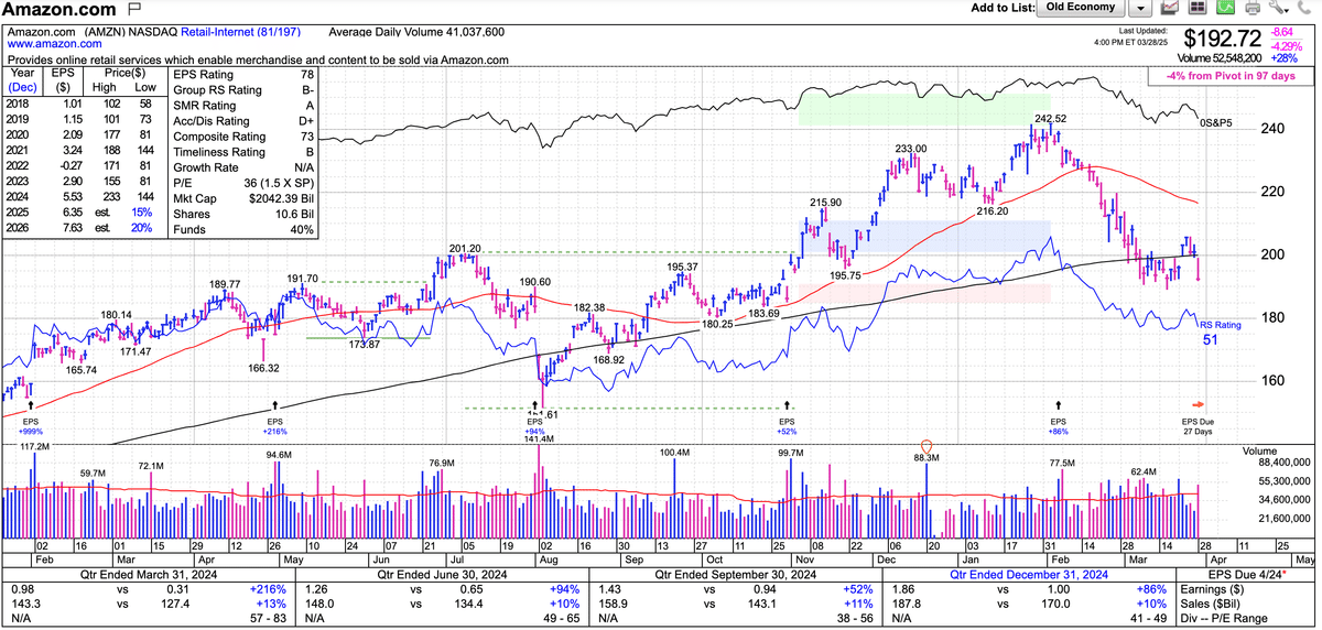 アマゾンの今年の安値は3月18日に付けたザラバ安値189.38 で、金曜日の引け値は192.72でした。