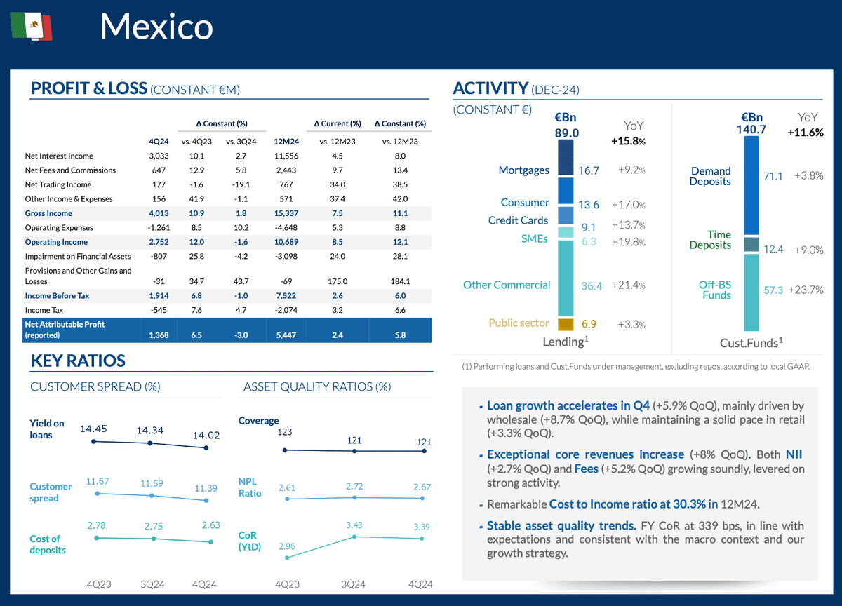 BBVAメキシコにおける預金金利は4.17%で、貸付金利は10.38%です。つまり純金利マージンは大きいわけです。