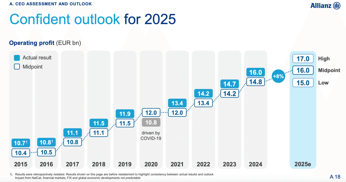 2024年度の売上高は前年同期比+11%の1800億ユーロ、営業利益は+9%の160億ユーロ、株主資本利益率は16.9%でした。