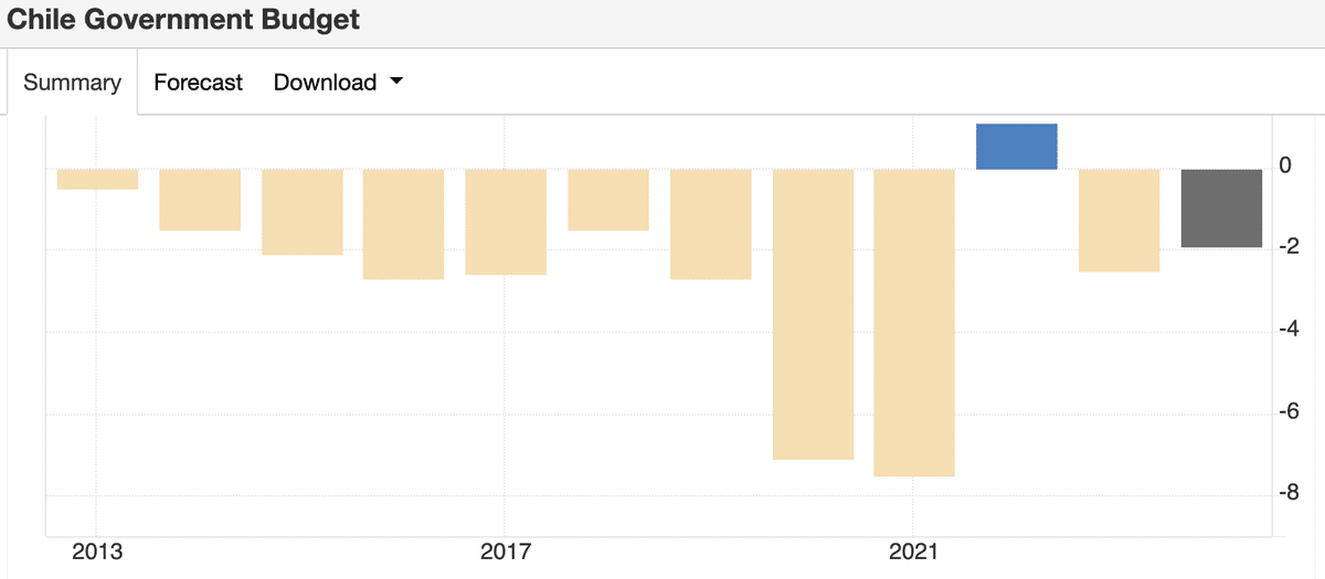 チリの政府は責任ある財政政策を取ってきました。具体的には財政収支を均衡させることに努めてきました。