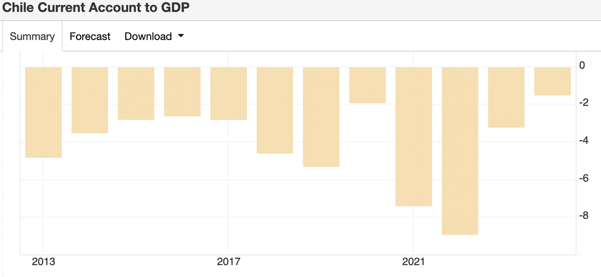 銅の輸出により高い外貨準備、経常赤字を少しに抑える、ペソの安定などを享受しています。