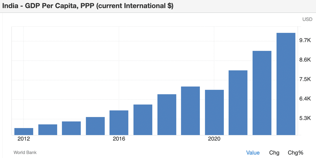 その点、インドは未だ9,700ドルです。
