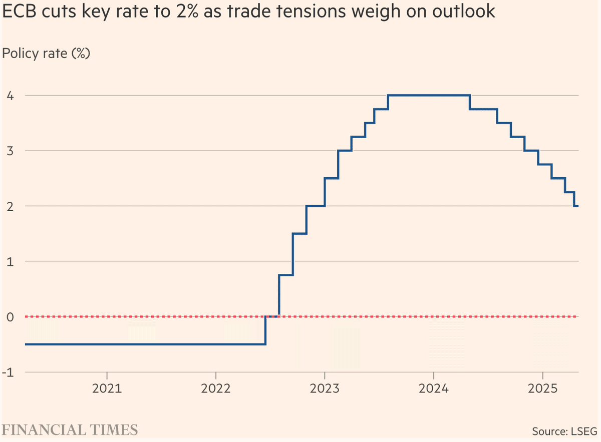 6月5日、欧州中央銀行(ECB)理事会は大方の予想通り政策金利を0.25%引き下げました。