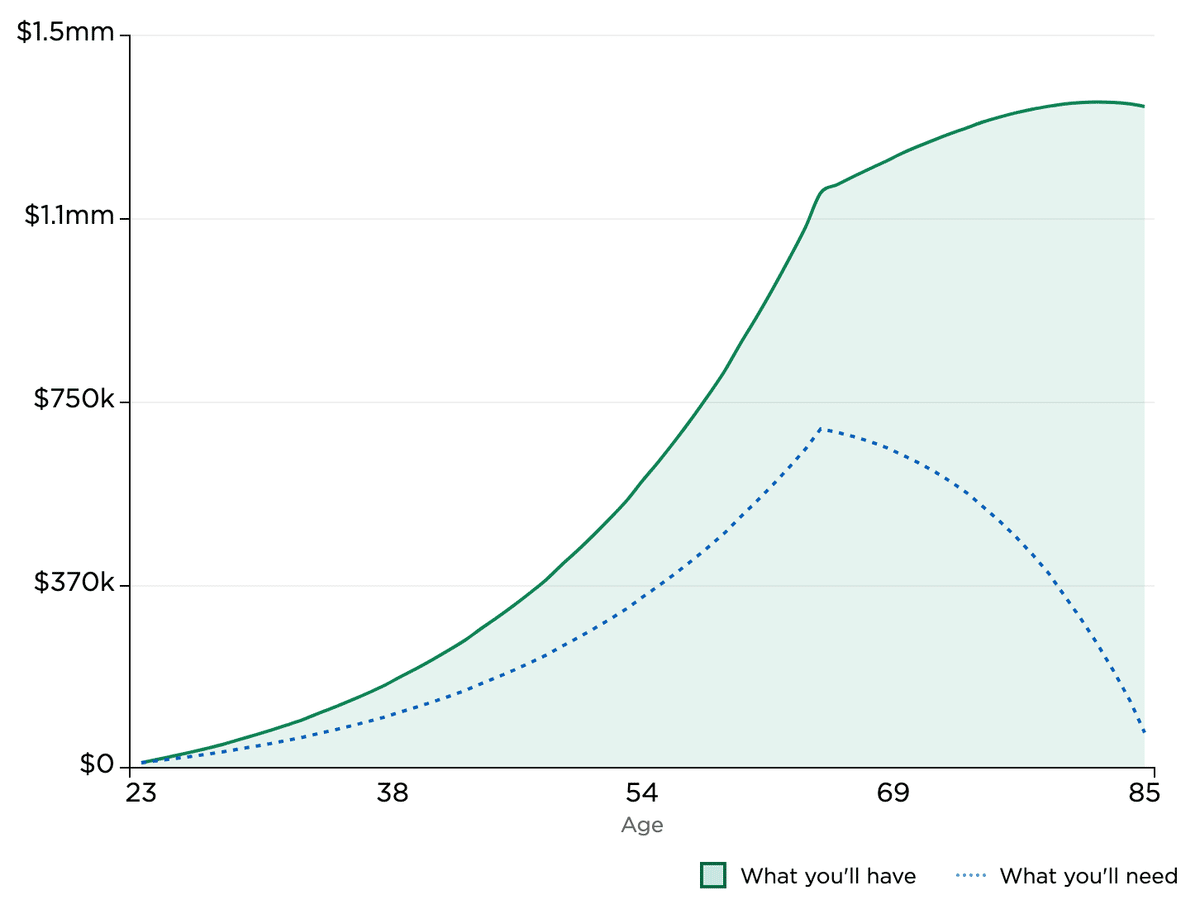 65歳時点での資産額は1,170,484ドルになります。