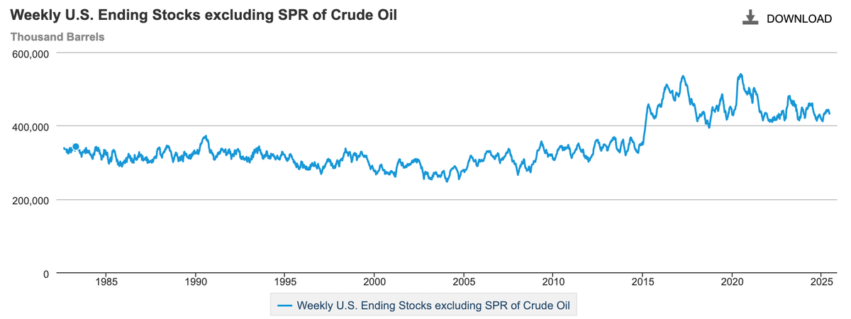 市場参加者は原油が大幅な供給過剰になっているという認識を持っていますが、現状はそれほどひどくないです。事実、米国の民間原油在庫は過去10年で最低に近い水準です。