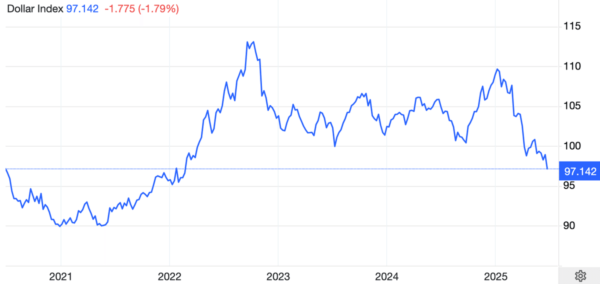 いま私がフォーカスしているのはドル指数です。きょう過去三年の最安値を割り込みました。