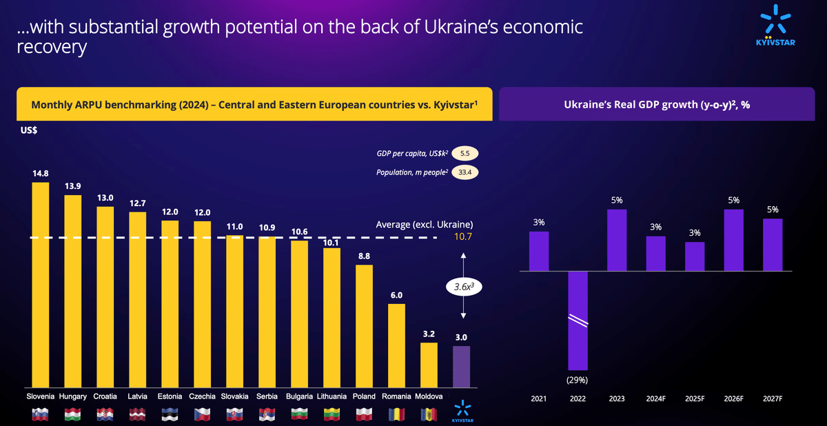 ウクライナはケータイのARPU(ユーザー単価)が$3と安いです。これは将来拡大する余地があります。