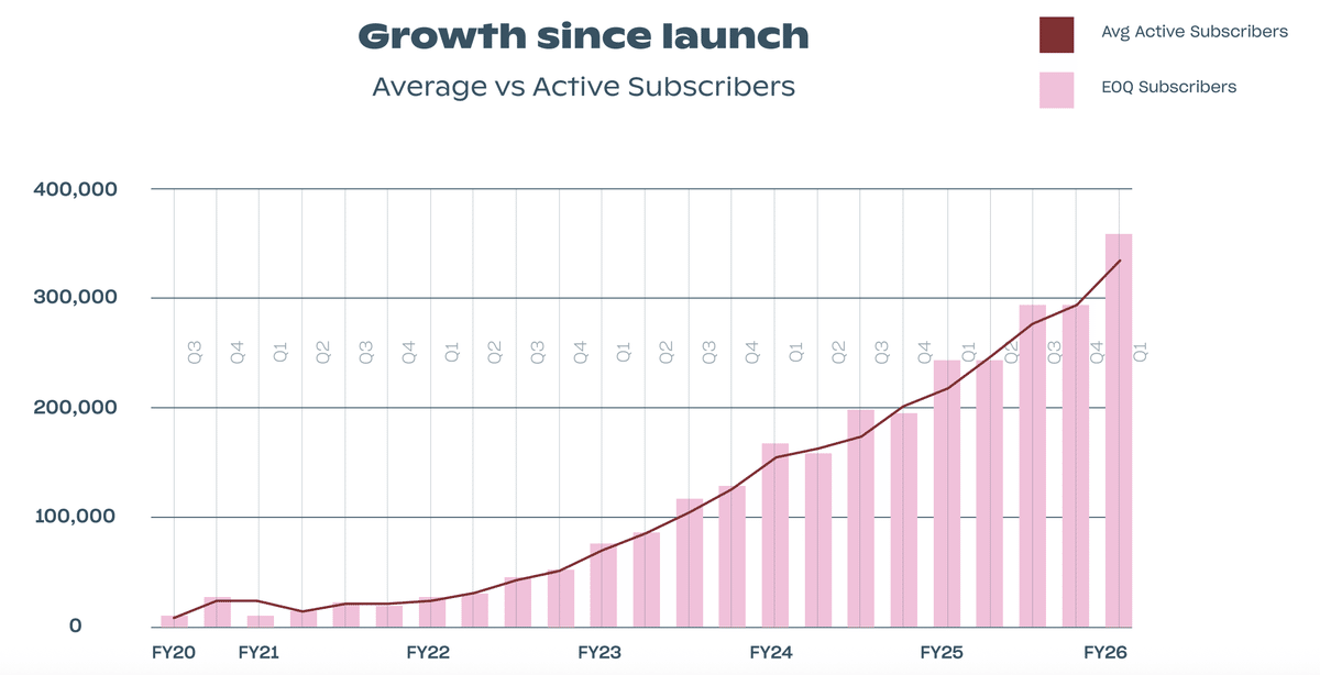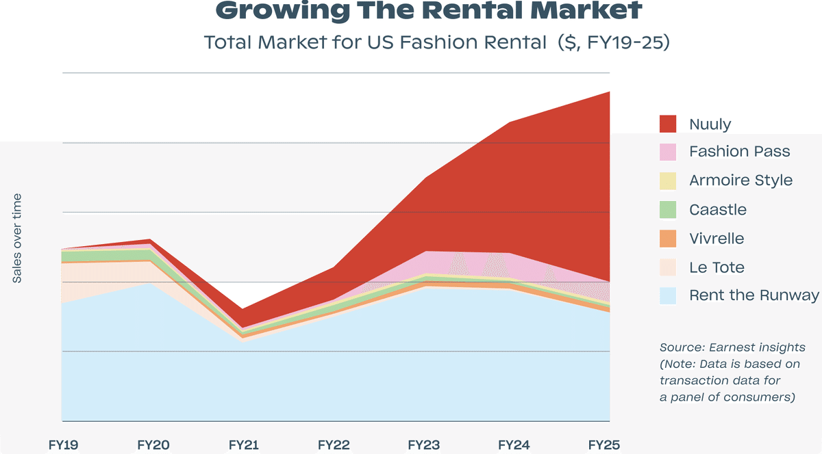 ニューリーは月額98ドルで6つの洋服が送られてきます。一通り着終わったら送り返す方式です。その中で特別気に入った服があれば、それを購入することも可能です。サービス開始以来、着実にサブスク顧客が増えています。
