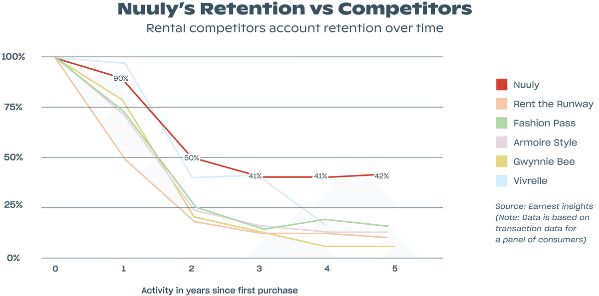 レンタルのサービスはニューリーだけでなく他社も試みたのですが、ニューリーが成功している理由は顧客離反率を低く抑えることに成功したことによります。