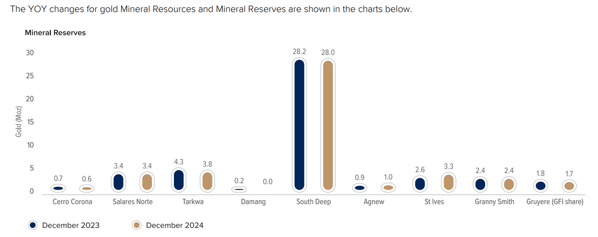 ゴールドフィールズは世界で二番目に確認埋蔵量の大きい金山、サウスディープ(2800万オンス)を所有しています。