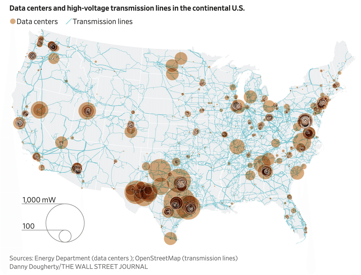 米国のデータセンターはテキサス州、バージニア州、ノースダコタ州、テネシー州などに多いです。テキサス、ルイジアナ州と米国東部のアパラチア山脈のあたりはシェールの産地です。