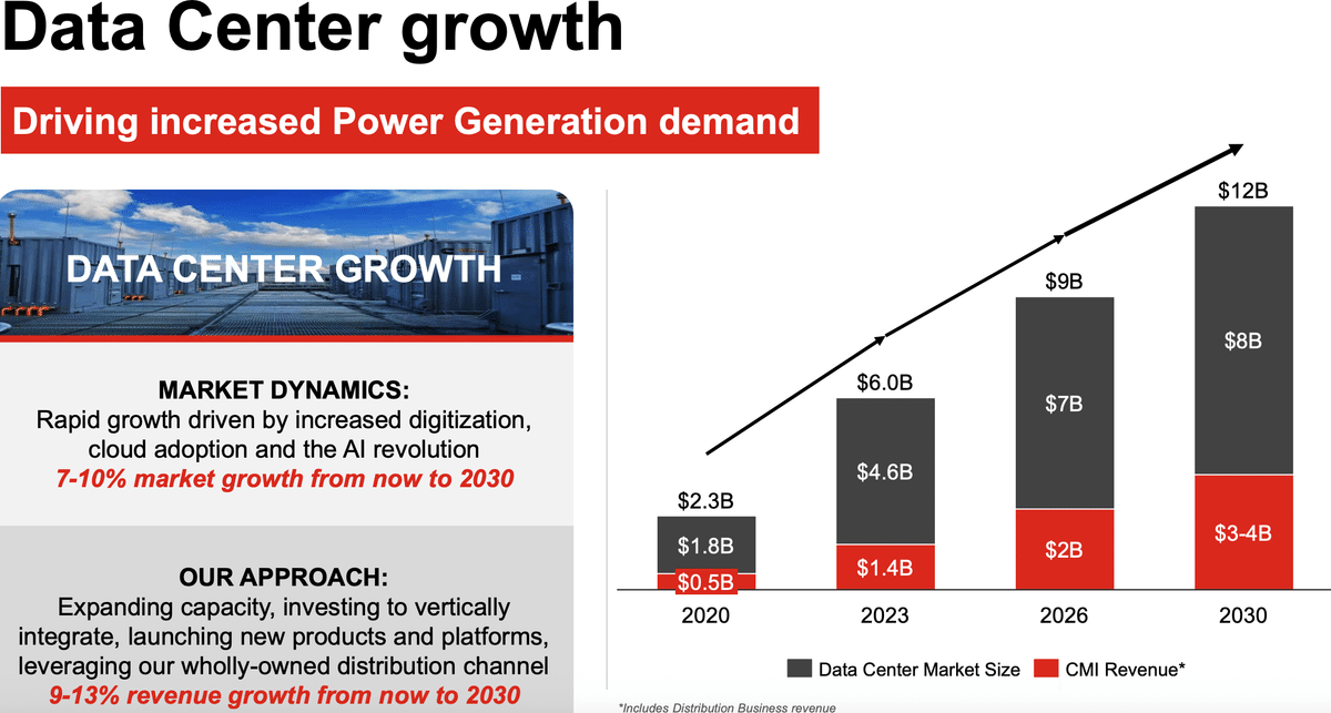 一方、カミンズはデータセンター向けパワー・ジェネレーターで22%のマーケットシェアを持っています。