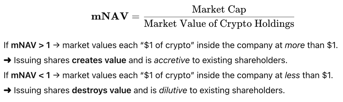 つまり全てのクリプト・トレジャリー企業の株価はmNAV=1に限りなく近い水準で取引されており、わざわざ新株を出すメリットは無いのです。