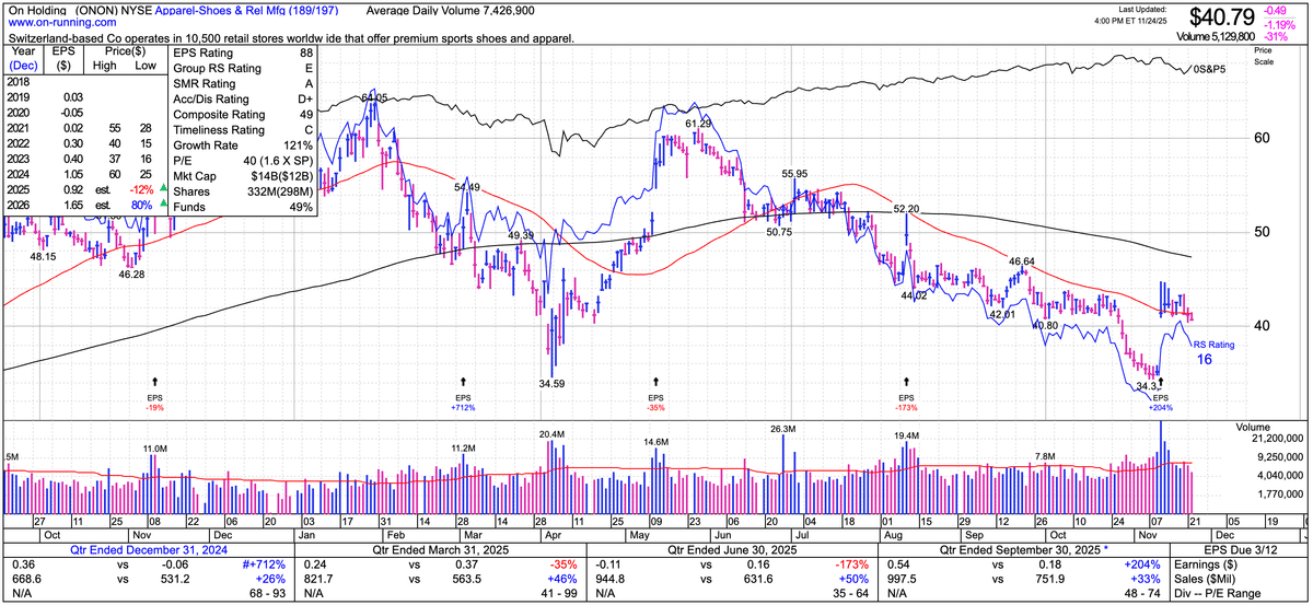 11月12日に発表された同社の第3四半期決算では売上高が前年同期比+24.9%の7.94億スイスフラン(コンセンサス予想は7.63億スイスフラン、ミックスは卸売が4.8億スイスフラン、DTCが3.15億スイスフラン、地域別では米州が4.36億スイスフラン、EMEAが2.1億スイスフラン、アジア太平洋が1.45億スイスフラン、製品別では運動靴が7.2億スイスフラン、アパレルが5億スイスフラン、アクセサリーが0.13億スイスフラン)、EPSが0.43スイスフラン(コンセンサス予想は0.26スイスフラン)と予想を軽々上回りました。グロスマージンは65.7%でした。