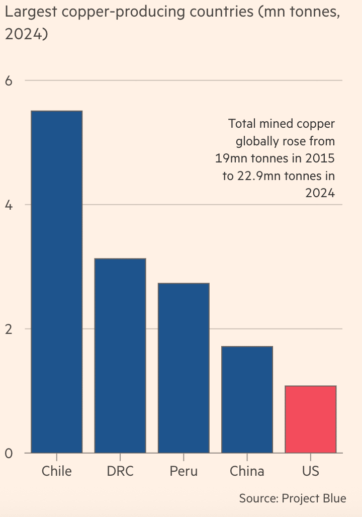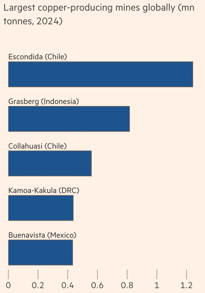 国別ではチリ、ペルーなど南米における銅生産が有名です。