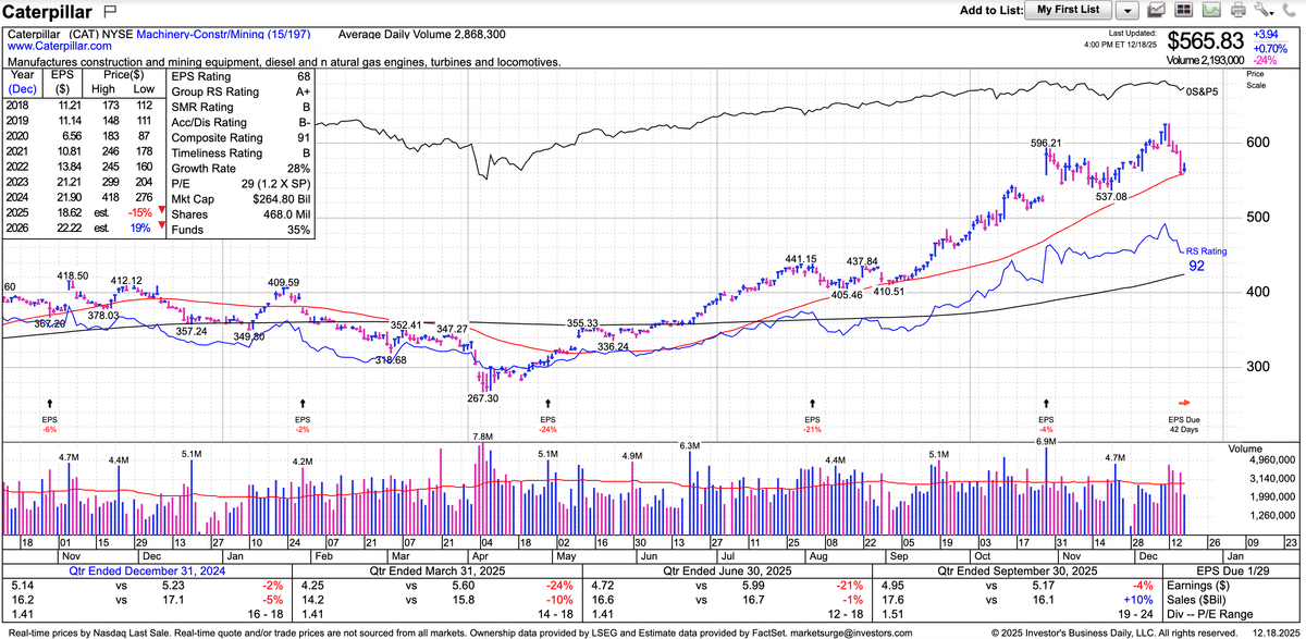 米国が好景気なひとつの理由はいま全米でAIデータセンターが建設されているからです。キャタピラー(CAT)は整地する際に使われるブルドーザーやAIデータセンターのバックアップ電源向け発電装置を作っています。