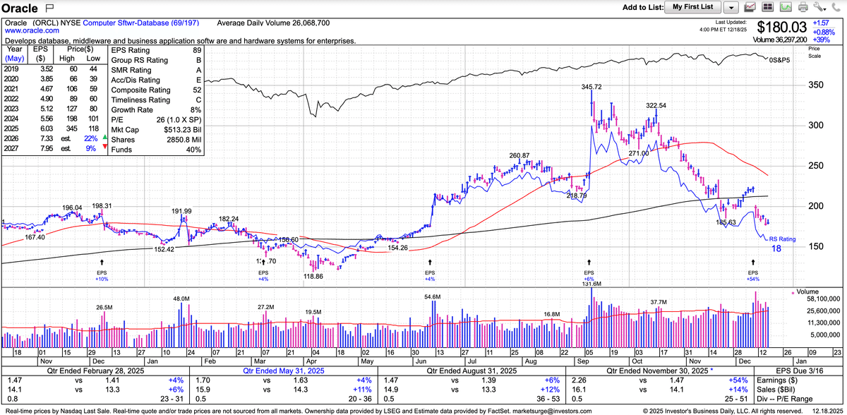 また大型ハイテク企業で最もAIデータセンターにコミットメントしている企業はオラクル(ORCL)なのですが、リースの支払い義務を履行できなくなるのでは?という懸念から株価は下がり気味になっています。