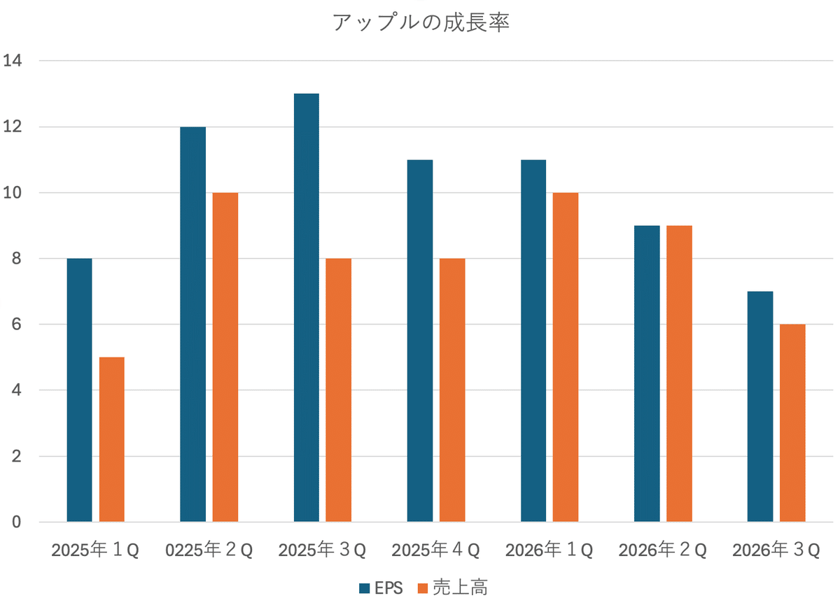 アップル(AAPL)はAIへの投資に消極的であり、他社のような重い償却負担はありません。