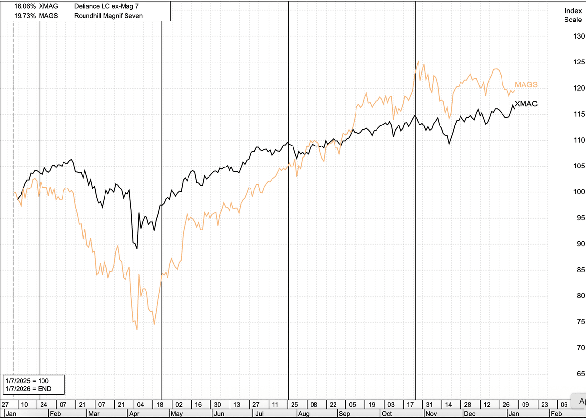 そのパフォーマンスをマグニフィセント・セブンETF(MAGS)と比べて見ると;